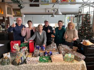 Deze foto is van de Voedselbank genomen omdat diverse partijen kerst pakketten gebracht hadden. Ze waren van Tumulus uitvaart, Karbrugse crematorium en van het OBC.